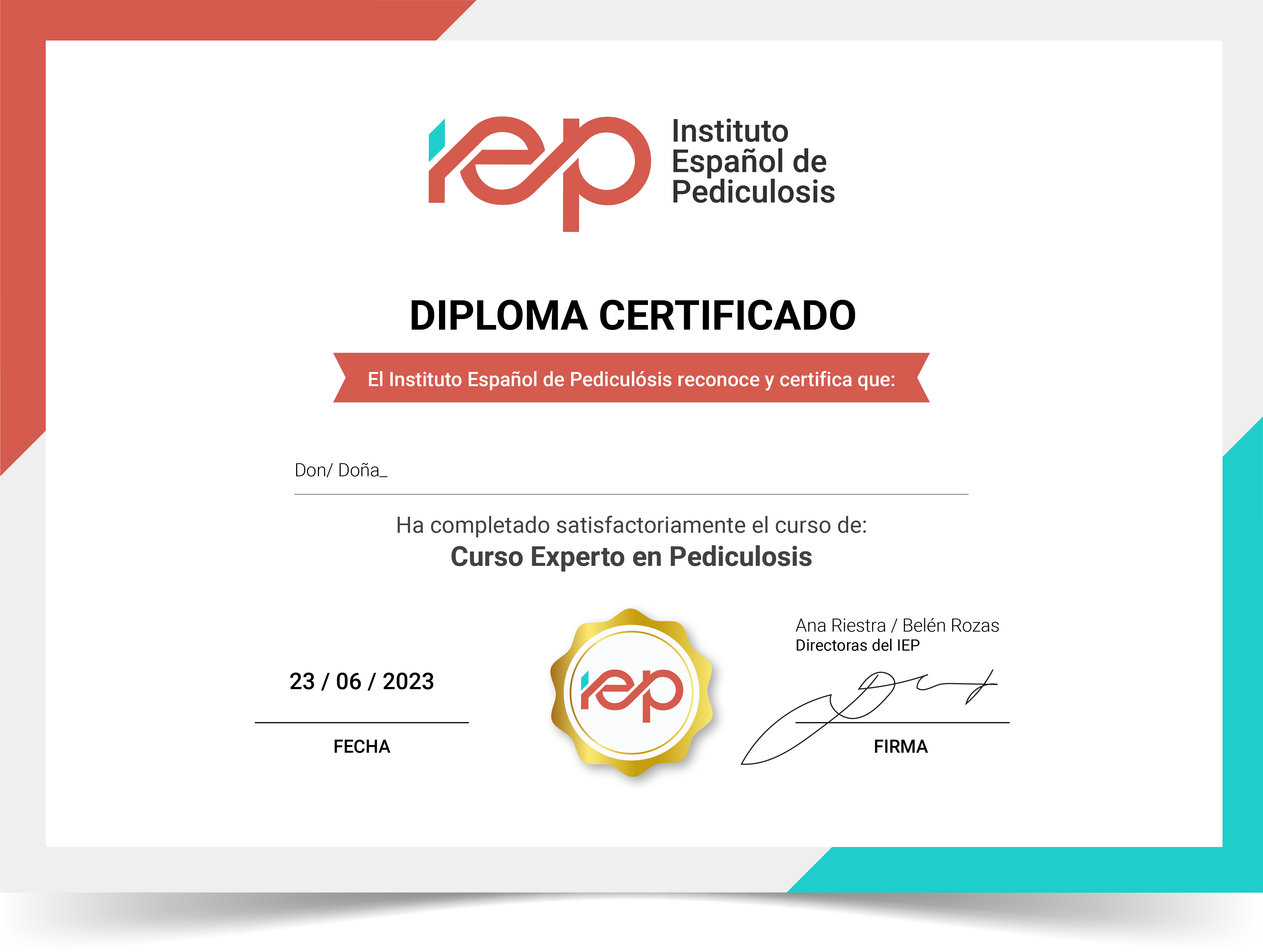 Una vez hayas finalizado satisfactoriamente la certificación y todas sus actividades correspondientes, recibirás un certificado respaldado por el INSTITUTO ESPAÑOL DE PEDICULOSIS.